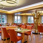 A vendégek nemzetközi ételeket élvezhetnek a helyszíni étteremben.